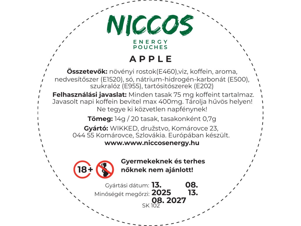 Minden tasak 75 mg koffeint tartalmaz, amely erőteljes lökést ad, hogy éber, koncentrált és készen álljon a napra. Akár dolgozik, akár tanul, edz, vagy csak extra lökésre van szüksége, a NICCOS gondoskodik róla.